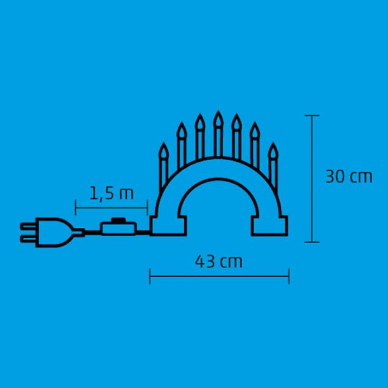 • 7 becuri în formă de lumânare , alb-cald