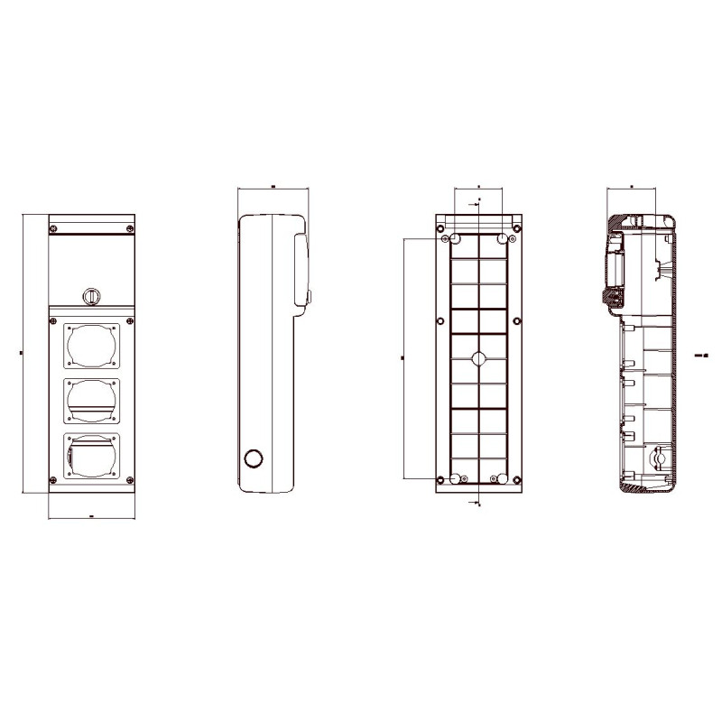 | Decupaje potrivite pentru iesirile prizei de 32A cu flansa 84*106 mm | |