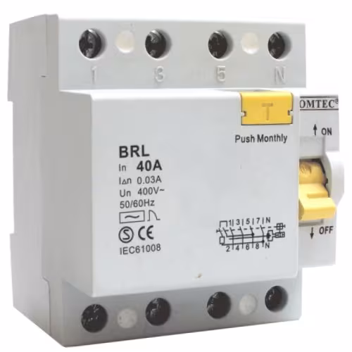 Siguranta automata cu protectie diferentiala tetrapolara 4P 40A/30mA BRL 10kA (RCD) Comtec