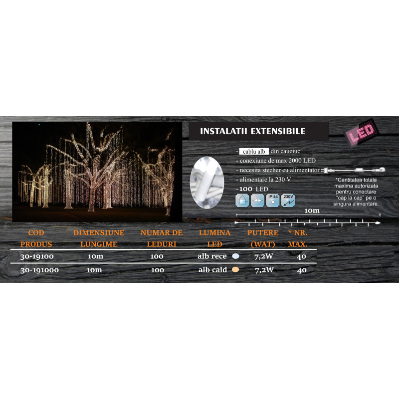 Instalatie Alb Rece 10m 100 LED sir fir alb - exterior 30-19100 gama S-OUT