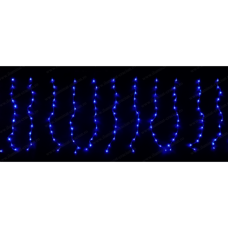 Instalatie perdea ploaie sir LED Albastru 4.5x1m fir transparent interior