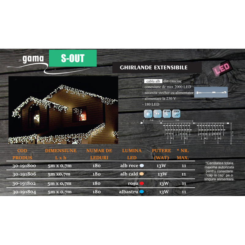 Instalatie streasina sir 180 LED Alb Rece 500x70cm - exterior gama S-OUT