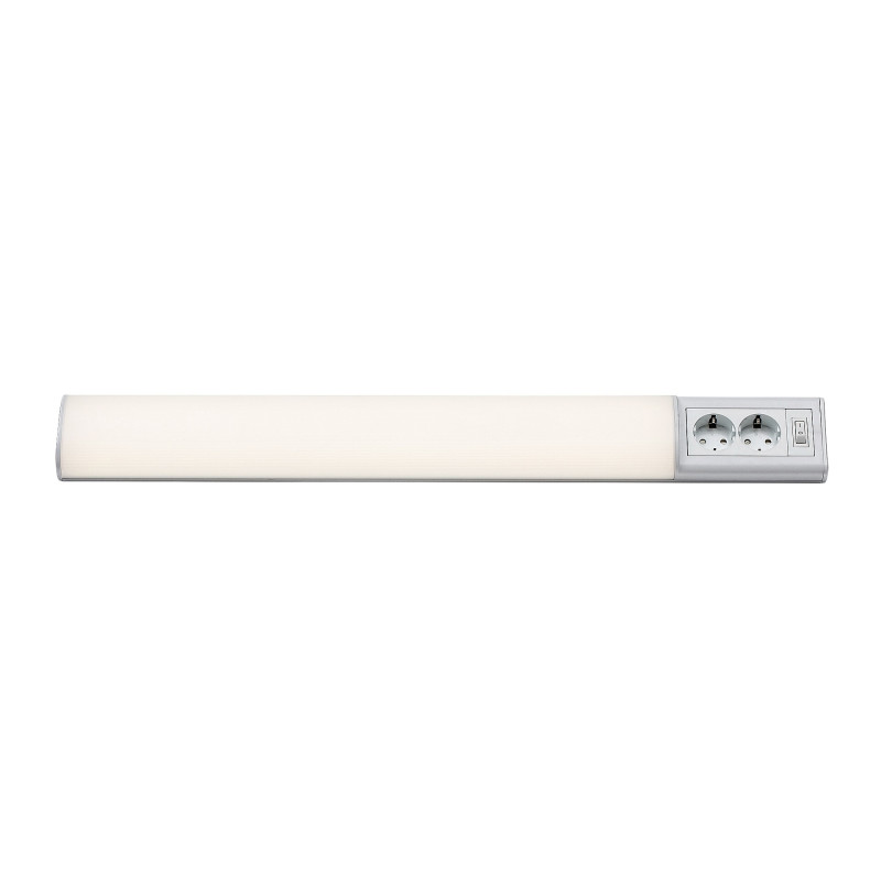 Lampa pentru blat Bath 2 oferă o soluție de iluminat practică și cu economie de spațiu pentru bucătăria Dvs modernă. Montată deasupra blatului de lucru, îi ajută în mod eficient pe cei din bucătărie în timpul pregătirii alimentelor, al gătitului, precum și în cursul spălării. Datorită dimensiunii și luminozității sale, acest model este, de asemenea, o alegere corespunzătoare și pentru blaturile de lucru mai mari. Corpul de lampă din aluminiu de culoare albă are două prize încorporate și este completat de un abajur din plastic alb. Lampa de perete include o sursă de lumină LED încorporată aparținând clasei energetice F, cu o putere de 15 W, o luminozitate de 1350 de lumeni cu abajur, 1560 de lumeni fără abajur și cu o durată de viață de 25.000 ore. Sursa de lumină cu temperatura de culoare de 4000 K emite o lumină albă naturală, care asigură un efect modern și curat, iar acest tip de lumină este ideal și pentru efectuarea activităților din bucătărie. Dimensiunile lămpii de iluminat blatul Soft 2 prevăzute cu comutator sunt următoarele: lățime 700 mm, înălțime 80 mm, distanța față de perete 65 mm.