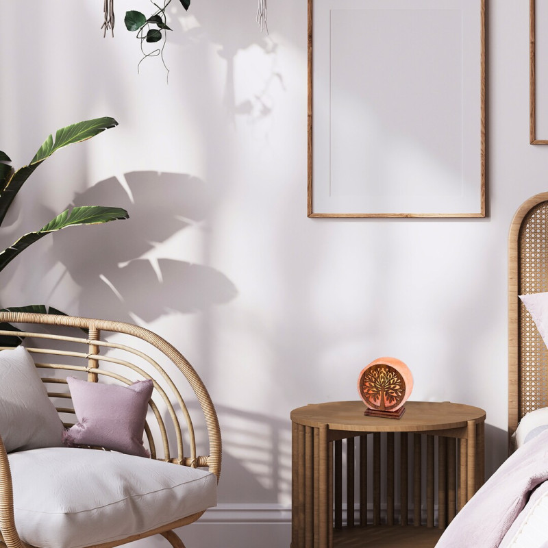 Cu tonurile sale calde și designul său atrăgător, lampa de sare Igdrasil poate fi o piesă fermecătoare pentru camera Dvs. de zi modernă. Modelul are o formă și decorație distinctivă și este realizat cu o bază ornamentală unghiulară în trepte, care susține o lampă în formă de disc împodobită cu motive orientale. Igdrasil, cu nuanțele sale portocalii, poate fi așezată pe o masă sau pe un raft care se potrivește stilului ei. Lampa mică de sare poate fi folosită cu o singură sursă de lumină cu o putere de până la 15 W, tip soclu E14. Acest model se potrivește cel mai bine cu o sursă de lumină albă caldă, care ajută în realizarea unei atmosfere familiale și intime în cameră. Dimensiunile lămpii de decor Igdrasil sunt următoarele: lățime 70 mm, înălțime 160 mm, diametru 150 mm. Acest model se livrează fără sursă de lumină.