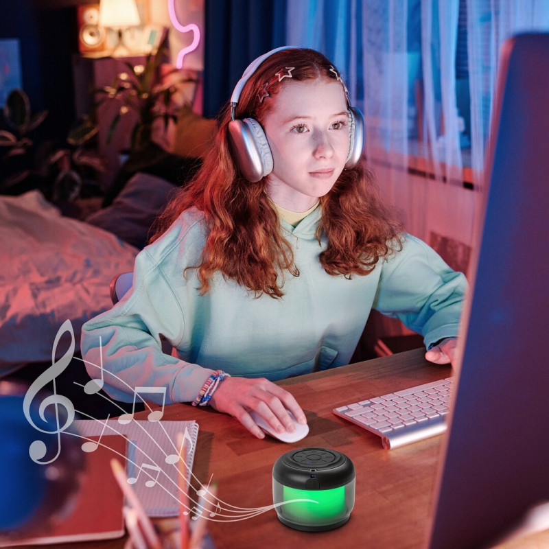 Lampa de masă LED Rabalux Radelia este recomandată celor care caută o lampă complementară versatilă, ușor de mutat. Acest model mic dispune de un difuzor Bluetooth și este capabil de iluminare RGB - perfect pentru crearea unui mediu confortabil înainte de culcare. Este alegerea ideală pentru camera copiilor, dormitor sau living. Este realizată din plastic, cu un corp cilindric negru și un abajur transparent și vine cu un cablu AUX. Lampa de design include o sursă de lumină LED încorporată și o baterie. Aceasta din urmă poate fi reîncărcată în 1-2 ore și funcționează timp de 3-4 ore cu o singură încărcare. Dimensiunea sa și soluția pe bază de baterie fac acest model ușor de mutat oricând, în timp ce se potrivește confortabil nu doar pe o masă sau noptieră, ci și pe un raft mic.