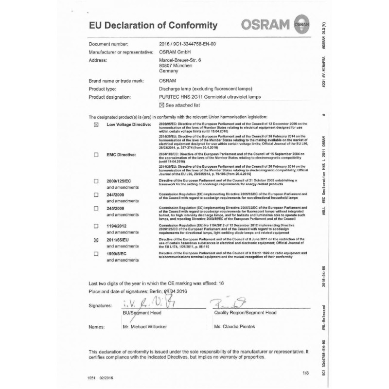 Model: 4P 2G11 UV-C. Cod intern (SKU): 4008321220684.