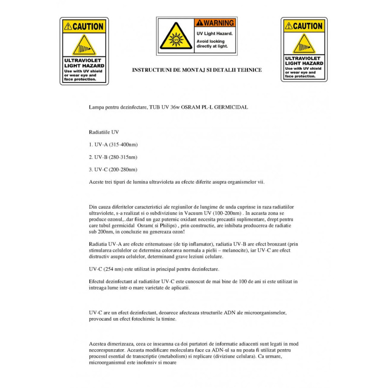 Emite radiatie UVC in plaja de 200-280nm cu lungime de unda principala de 253.7-254 nm, lungimea de unda cea mai importanta in distrugerea ADN-ului si ARN-ului