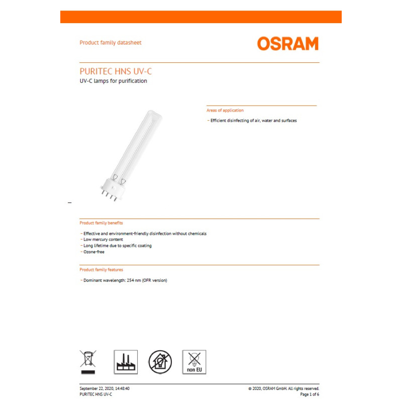 Caracteristica principala a acestei lampi,..este lungimea de unda dominanta: 254 nm (versiunea OFR),avand ca si beneficii, urmatoarele: