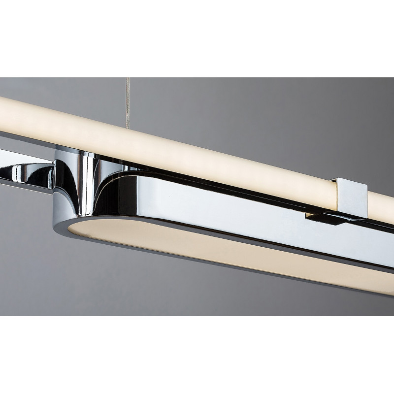 Pandantivul excelent Contessa va fi însoțitorul Dvs. indispensabil în bucătărie atunci când pregătiți, gătiți și serviți mâncarea. Lampa largă, cu luminozitate ridicată, luminează eficient încăperea, iar designul său modern o face să se potrivească perfect în majoritatea bucătăriilor moderne. Modelul realizat din metal cromat este completat de un abajur din plastic alb și poate fi fixat pe tavan cu ajutorul unei baze decorative dreptunghiulare cromate. Corpul de iluminat în sine este format din două elemente alungite, interconectate și rotunjite. Contessa are o sursă de lumină LED încorporată aparținând clasei energetice G, cu o putere de 48 W, o luminozitate de 2900 de lumeni cu abajur, 5300 de lumeni fără abajur și cu o durată de viață de 15.000 ore. Sursa de lumină cu o temperatură de culoare de 4000 K luminează cu lumină albă naturală, care creează un efect modern și curat. Pandantivul de bucătărie are o următoarele dimensiuni: lățime 1000 mm, un interval de suspendare reglabil între 500-1200 mm și o adâncime de instalare de 380 mm.
