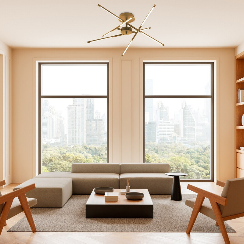 Plafoniera Rabalux Henli 2 este recomandată celor care consideră importante atât designul creativ, cât și funcționalitatea. Această lampă modernă este realizată cu o structură elegantă din metal de culoare aurie și un abajur din plastic alb, și se fixează pe tavan cu ajutorul unei baze decorative rotunde. Structura este compusă din elemente lungi, asemănătoare unor bețe, dispuse într-o manieră aparent aleatorie și care se intersectează în mai multe puncte. Plafoniera are o sursă de lumină LED integrată care emite o lumină alb cald. Intensitatea luminoasă ridicată face din acest model o alegere excelentă pentru iluminarea eficientă a spațiilor mai mari. Este ideală pentru diverse încăperi din locuință: poate fi montată în sufragerie, dining, bucătărie sau dormitor. Datorită tehnologiei LED, se caracterizează printr-un consum eficient de energie și o durată lungă de viață.