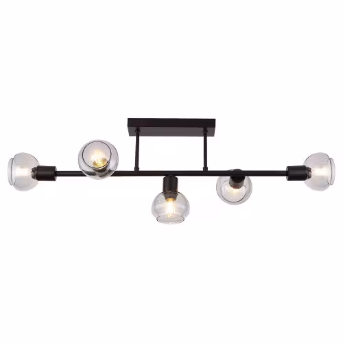 Lustra modernă Sullivan cu 5 becuri este recomandată în primul rând pentru camera de zi sau sufragerie, dar poate fi montată și în dormitor. Corpul de iluminat metalic de culoare neagră completat de abajururi rotunde, colorate, lampa putând fi montată pe tavan cu ajutorul unei baze decorative pătrate. Capetele sunt poziționate pe o bară lungă de susținere, fixată de baza decorativă, asigurând iluminatul eficient, fiind orientate în direcții diferite. Lampa Sullivan poate fi folosită cu 5 becuri de maximum 40 W fiecare. Tipul de soclu este E14. În funcție de preferințe și locul instalării, puteți alege o sursă de iluminat albă caldă sau naturală. Dimensiunile lustrei Sullivan sunt: lățime 830 mm, înălțime 255 mm, lungime 270 mm. Acest model este furnizat fără surse de iluminat.