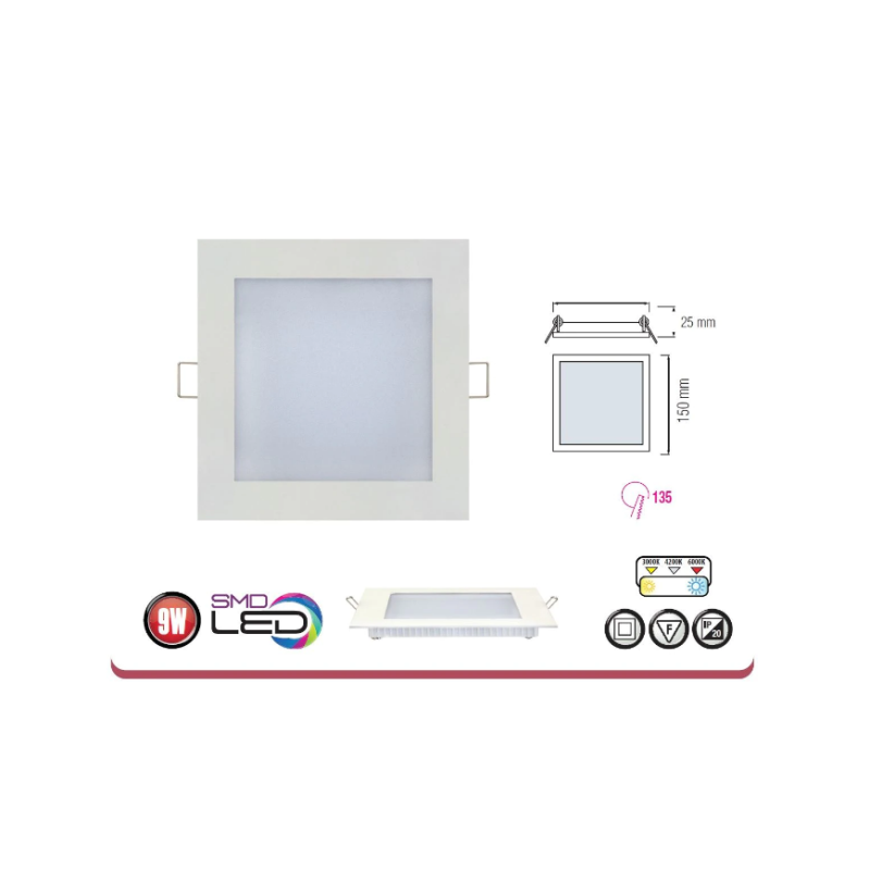 Panou Led patrat, model Slim, de inalta calitate, putere 9 W