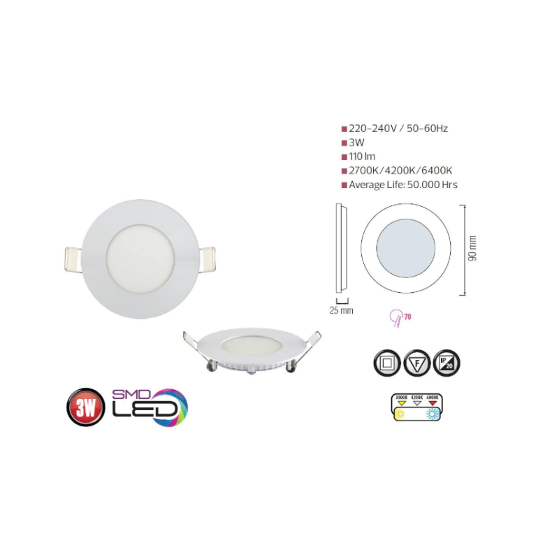 Panou Led rotund, model Slim, de inalta calitate, putere 3 W