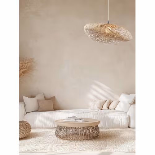 Această elegantă plafonieră combină bambusul natural cu o bază metalică, oferind o notă stilată și organică spațiului dumneavoastră. Cu o lungime de 80 cm și o înălțime de 30 cm, oferă o iluminare suficientă, menținând în același timp un farmec modern, rustic. Este compatibilă cu becuri E27 de până la 40W (nu sunt incluse), funcționează cu o tensiune de 220-240V și o frecvență de 50/60Hz. Ideală pentru a adăuga frumusețe naturală casei dumneavoastră.