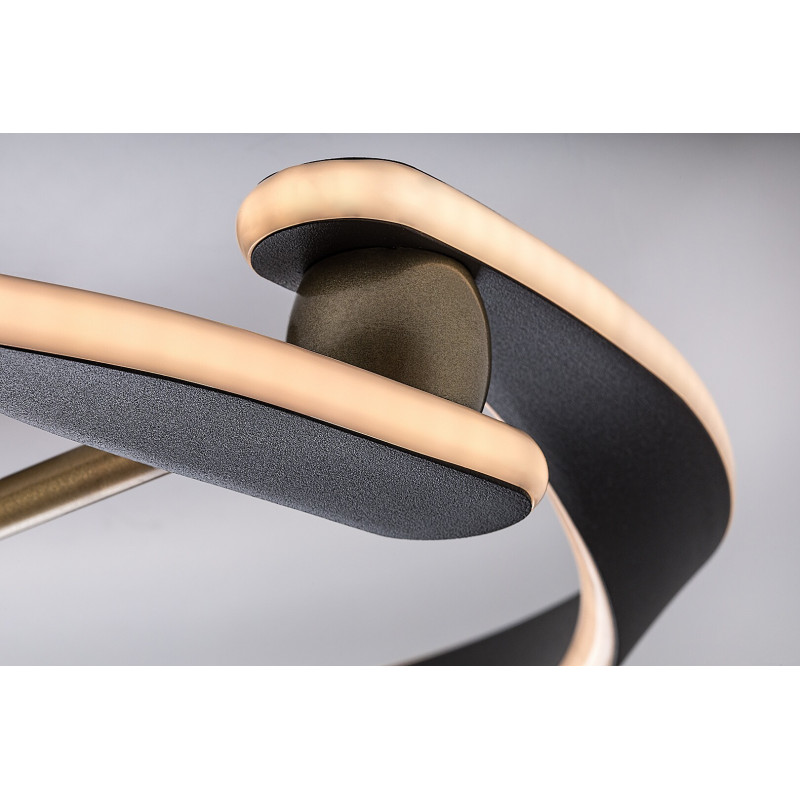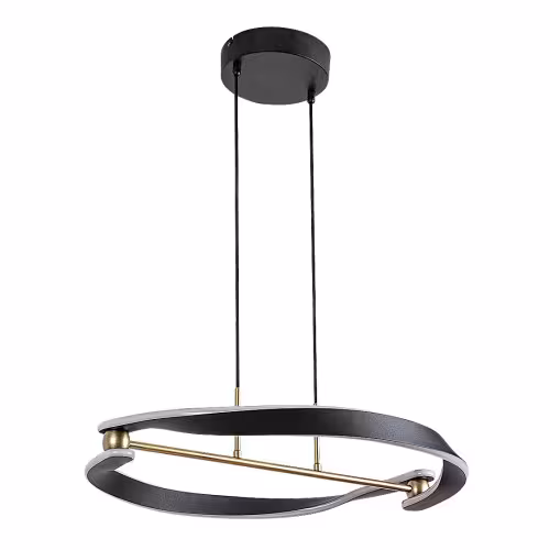 Lampa suspendată Rabalux Adalind este un model creat de Rabalux. Este alegerea ideală pentru cei care caută o lampă suspendată modernă, cu un design creativ. Vine într-o combinație elegantă de culori negru și aur, cu un suport metalic și un abajur din plastic alb. Designul său se bazează pe două elemente răsucite, care formează împreună o formă rotundă, conectate printr-o bară de susținere orizontală de culoare aurie. La aceasta sunt atașate cablurile, care sunt conectate la o bază decorativă rotundă de culoare neagră, montată deasupra. Lampa dispune de o sursă de lumină LED încorporată, care oferă o luminozitate mare și o lumină albă caldă. Lampa suspendată este recomandată pentru living, dining sau dormitor. Tehnologia LED face ca acest model să fie eficient din punct de vedere energetic și să asigure o durată de viață remarcabilă.