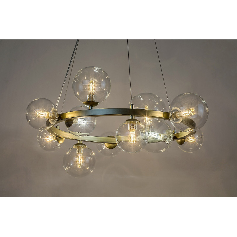 Lampa suspendată Rábalux Aslov este recomandată pentru cei care sunt în căutarea unui model spectaculos, cu un design creativ, și care în același timp oferă suficientă luminozitate într-o incintă spațioasă. Corpul rotund al candelabrului este fabricat din metal de culoare aurie strălucitoare, iar capetele atașate sunt completate de abajururi transparente de formă sferică – fabricate din sticlă. Cele unsprezece abajururi în formă de bule au diferite dimensiuni și sunt amplasate aparent în mod aleatoriu pe corpul lămpii, contribuind astfel la suspansul creat de aspectul lămpii suspendate. Acest model este o alegere perfectă pentru camera de zi sau dormitor. Lampa suspendată este dotată cu dulii tip G9 în care pot fi instalate unsprezece surse de lumină, fiecare cu o putere de până la 28 W. Pot fi utilizate becuri cu lumină albă naturală sau albă caldă. Produsul este livrat fără surse de lumină.