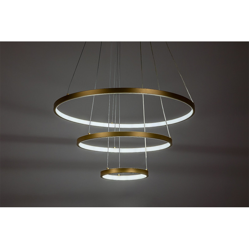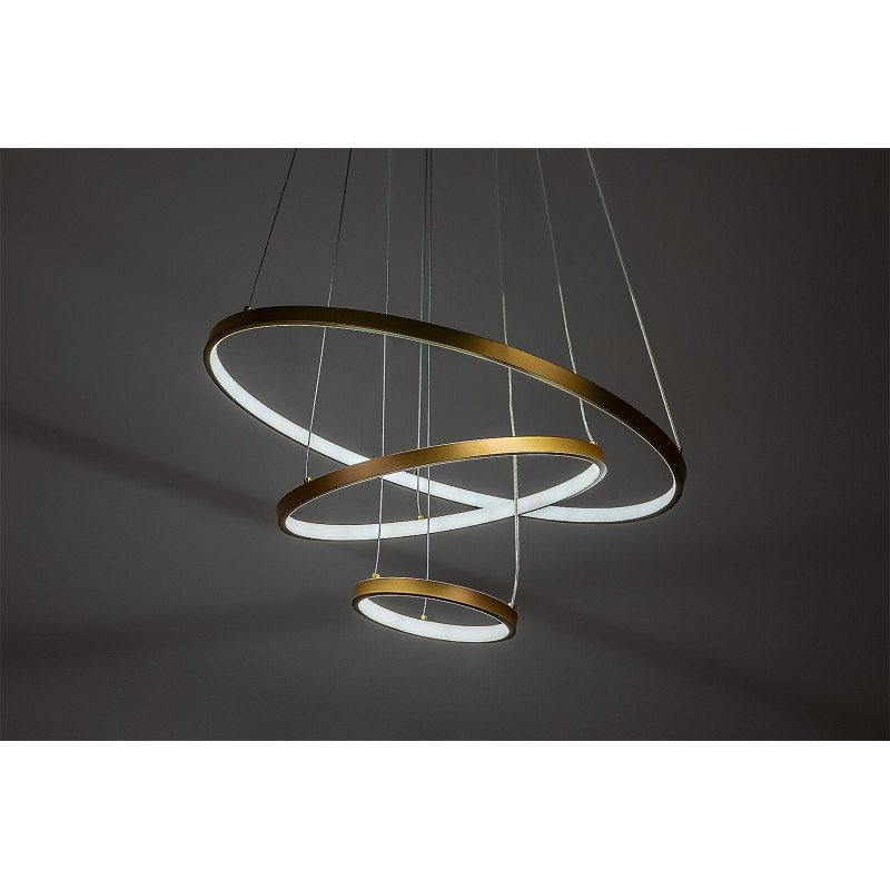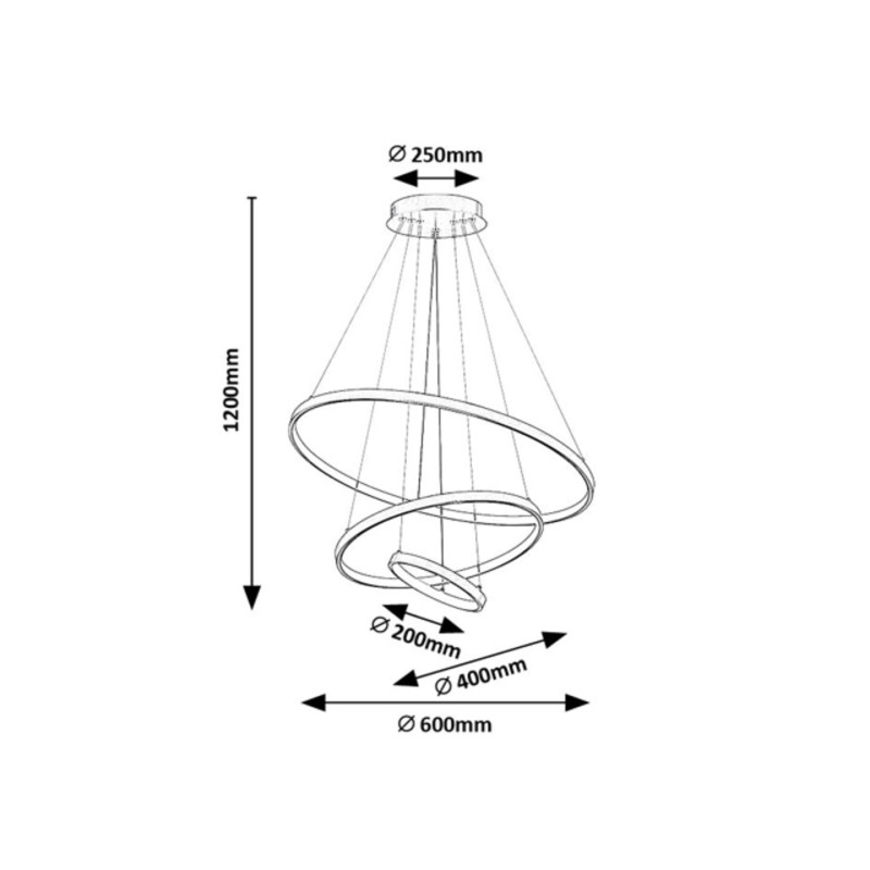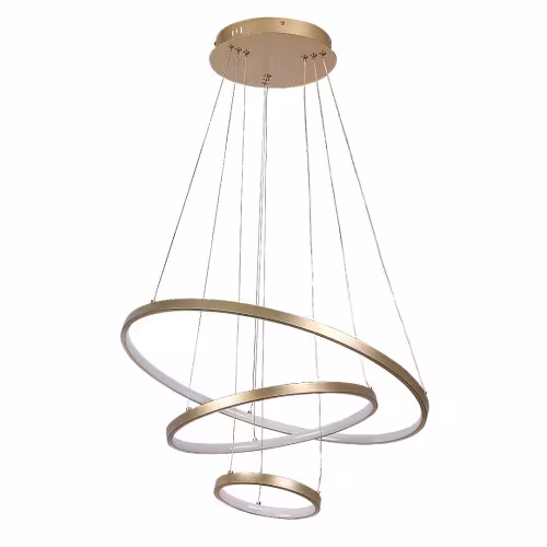 Lampa suspendată Rabalux Beliza cu 3 becuri este recomandată celor care apreciază atât funcționalitatea, cât și un design creativ și atrăgător. Lampa suspendată modernă este alcătuită din 3 elemente de formă rotundă, plasate unul sub celălalt, și este realizată din metal de culoare aurie. Inelele au diametre diferite și pot fi poziționate după dorință. Lampa emite lumină pe partea interioară a inelelor, iar abajururile sunt realizate din silicon alb. Lampa suspendată este completată de o bază decorativă rotundă de culoare aurie și cabluri metalice de culoare argintie. Aceasta dispune de o sursă de lumină LED încorporată care oferă o luminozitate excepțională, asigurând în același timp eficiență energetică și o durată lungă de viață. Luminozitatea și temperatura de culoare pot fi reglate prin telecomandă. Lampa suspendată inteligentă dispune, de asemenea, de o funcție de lumină de noapte. Este ideală pentru living, dining sau dormitor.