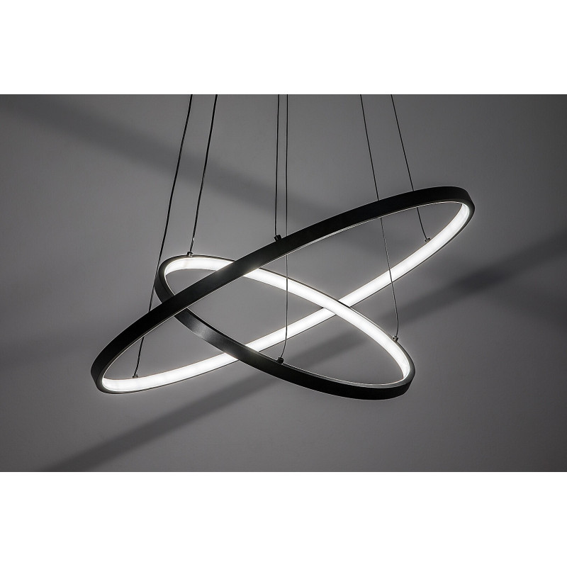 Lampa suspendată Rabalux Beliza cu 2 becuri este recomandată celor care apreciază funcționalitatea și designul creativ. Lampa suspendată modernă este alcătuită din două elemente de formă rotundă și este realizată din metal de culoare neagră. Cele două inele au diametre diferite și pot fi poziționate după dorință. Lampa emite lumină pe partea interioară a inelelor, iar becurile sunt realizate din silicon alb. Lampa suspendată este completată de o bază decorativă rotundă de culoare neagră și cabluri metalice de culoare argintie. Aceasta dispune de o sursă de lumină LED încorporată care asigură o funcționare eficientă energetic și o durată lungă de viață. Luminozitatea și temperatura de culoare pot fi reglate prin telecomandă. Lampa suspendată inteligentă dispune, de asemenea, de o funcție de lumină de noapte. Este ideală pentru living, dining sau dormitor.