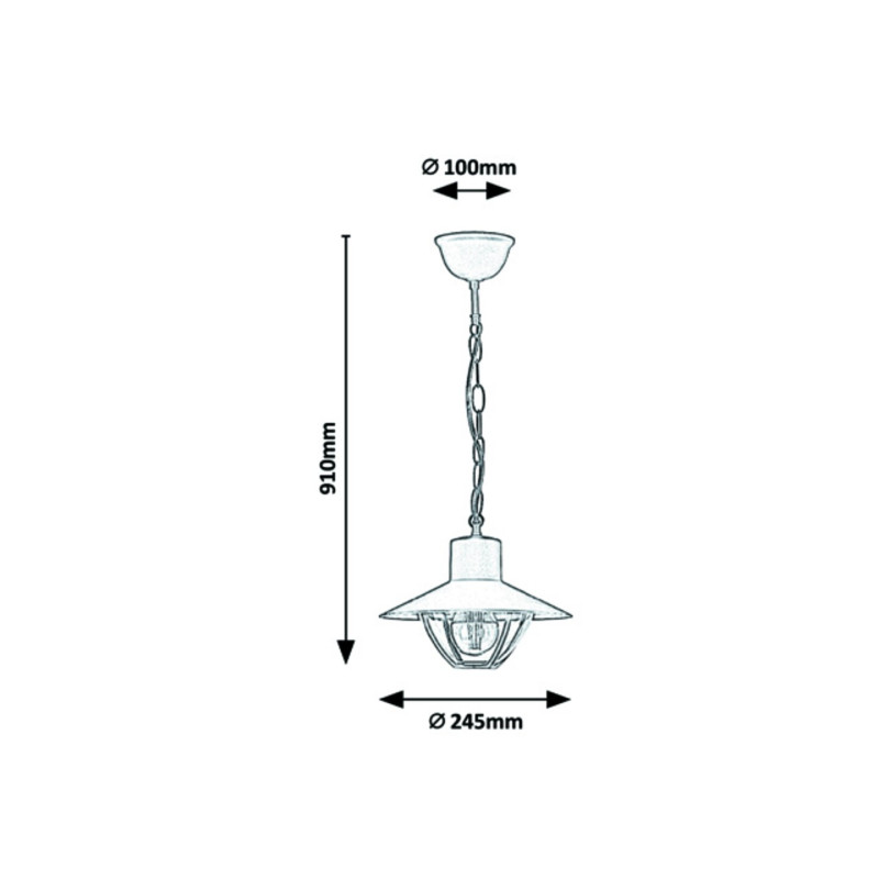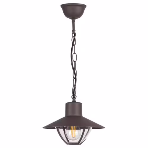 Pandantivul de exterior Almada este recomandat mai ales pentru terasele caselor în stil tradițional. Corpul de aluminiu maro este complimentat de un abajur din material plastic transparent, iar lampa poate fi montată pe tavan cu ajutorul unei baze decorative mici, rotunde, de aceeași culoare precum capul lămpii. Corpul lat, în formă de pălărioară, și abajurul de forma unei bărcuțe oferă acestui model un aspect șic, unic. Pandantivul poate fi folosit cu o singură sursă luminoasă de până la 10W, tip de soclu E27. Protecția sa IP44 ne asigură că acest model este protejat împotriva intrării obiectelor cu un diametru maxim de 1mm, ca și împotriva stropirii cu apă din orice direcție. Lățimea pandantivului de exterior este de 245mm, distanța față de tavan de 910mm. Lampa se livrează fără o sursă luminoasă.