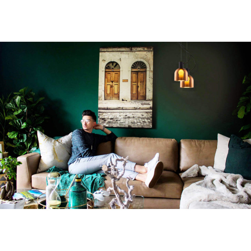 - corp din metal negru, abajur sticla fumuriu-cupru