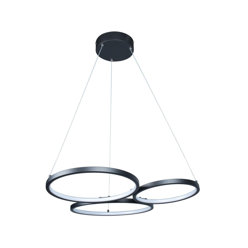 Lampa suspendată Rábalux Formand este alegerea ideală pentru cei care, pe lângă asigurarea luminozității adecvate, consideră importantă și aspectul modern și elegant al lămpii. Corpul lămpii suspendate este format din trei elemente rotunde interconectate, fabricate din metal, în culoare neagră elegantă. Abajururile sunt fabricate din plastic de culoare albă. Sursa de lumină încorporată emite lumină albă caldă, care ajută la crearea unei atmosfere intime, confortabile și primitoare. Acest candelabru cu design creativ este recomandat în special pentru camera de zi, sufragerie sau dormitor. Tehnologia LED integrată asigură funcționarea eficientă din punct de vedere energetic și o durată de viață lungă a lămpii tip pandantiv.