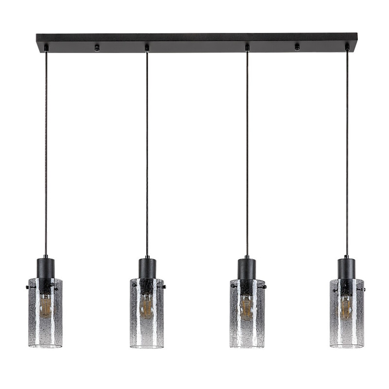 Lampa suspendată cu 4 becuri Rabalux Fumea este recomandată în principal iubitorilor de stil vintage. Cu aspectul său reținut, acest model poate fi integrat în multe camere din casa ta: îl poți instala în living, bucătărie, sufragerie sau chiar dormitor. Lampa este alcătuită dintr-un corp metalic negru și abajururi cilindrice din sticlă fumurie. Poate fi fixată de tavan cu ajutorul unei baze decorative lungi, pătrate, de care sunt atașate cele patru capete de lampă, care sunt suspendate într-un rând, unul lângă altul, la aceeași înălțime. Lampa poate fi utilizată cu patru becuri, fiecare cu o putere de până la 60 W. Tipul de soclu este E27. Deoarece abajururile permit să se vadă sursele de lumină, este o idee bună să folosești acest model cu becuri estetice, cu forme neconvenționale. Lampa suspendată cu 4 becuri este livrată fără surse de lumină.