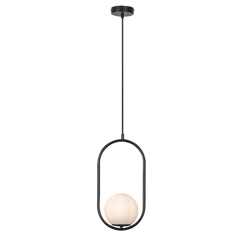 Cu designul său creativ și combinația de culori alb-negru, pandantivul Ghita poate fi integrat în mod excelent în numeroase camere de zi moderne. Modelul negru, realizat din metal se caracterizează prin abajurul sferic din sticlă albă situată în partea inferioară a cadrului metalic alungit cu capăt rotunjit. Ghita poate fi fixat pe tavan cu ajutorul unei baze decorative rotunde mici, care este conectat cu capul lămpii printr-un cablu din textil. Lampa poate fi folosită cu o singură sursă de lumină cu o putere de până la 20 W, tip soclu E27. Dacă alegeți un bec cu lumină albă naturală pentru acest pandantiv, puteți obține un efect modern și curat, ideal pentru camera de zi, una dintre cele mai aglomerate încăperi din casa Dvs. Dimensiunile lămpii Ghita sunt următoarele: lățime 210 mm, înălțime 400 mm, diametru 150 mm, suspendare 1200 mm, diametru de instalare 100 mm. Acest model se livrează fără sursă de lumină.
