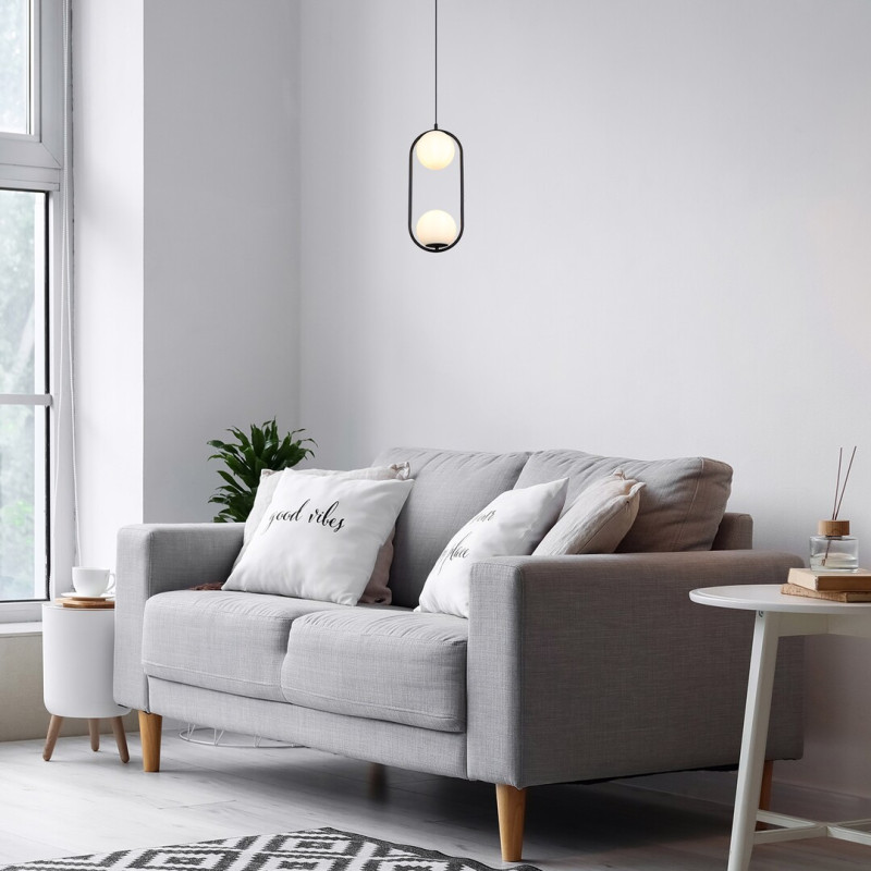 Cu designul său creativ și combinația de culori alb-negru, pandantivul Ghita cu două surse de lumină poate fi o piesă confortabilă și fermecătoare pentru numeroase camere de zi moderne. Modelul negru, realizat din metal se caracterizează prin câte un abajur sferic din sticlă albă situate în partea inferioară și superioară a cadrului metalic alungit cu capăt rotunjit. Ghita poate fi fixat pe tavan cu ajutorul unei baze decorative rotunde mici, care este conectat cu capul lămpii printr-un cablu din textil. Lampa poate fi folosită cu două surse de lumină, fiecare cu o putere de până la 20 W, tip soclu E27. Dacă alegeți becuri cu lumină albă naturală pentru acest pandantiv, puteți obține un efect modern și curat, ideal pentru camera de zi, una dintre cele mai aglomerate încăperi din casa Dvs. Dimensiunile lămpii Ghita sunt următoarele: lățime 210 mm, înălțime 500 mm, diametru 150 mm, suspendare 1200 mm, diametru de instalare 100 mm. Acest model se livrează fără surse de lumină.