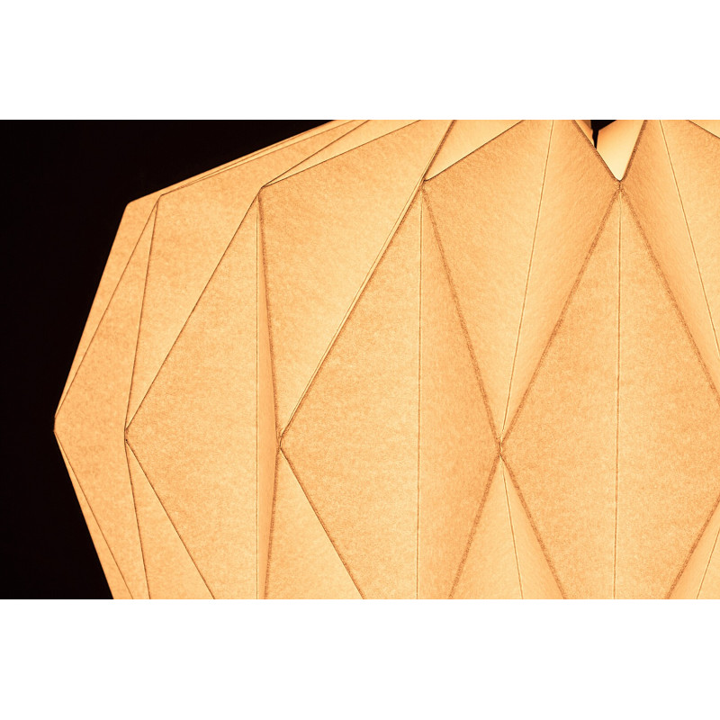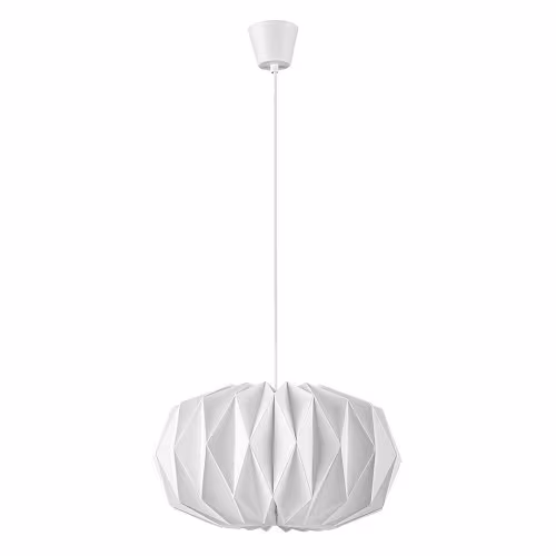 Conceput pentru camera de zi, pandantivul Ormini reprezintă stilul scandinav. Nu este o coincidență faptul că abajururile de hârtie sunt preferate de mulți, deoarece ele inspiră un aer de joacă și naturalețe în această încăpere cu trafic intens a locuinței noastre. Lampa din metal alb mat poate fi fixată pe tavan cu ajutorul unei baze decorative cilindrice mici care se îngustează în jos. Abajurul din hârtie albă mată, care alcătuiește o formă sferică, creează un spațiu sferic, asemănător unei flori, în jurul sursei de lumină. Ormini poate fi folosită cu o singură sursă de lumină cu o putere de până la 25 W, tip soclu E27. Culoarea luminii emise de bec, care poate fi caldă sau albă naturală, iasă în evidență în mod excepțional prin intermediul abajurului de hârtie albă. Dimensiunile pandantivului sunt următoarele: înălțime 235 mm, diametru 430 mm, suspendare 1400 mm, diametru de instalare 90 mm. Acest model se livrează fără sursă de lumină.