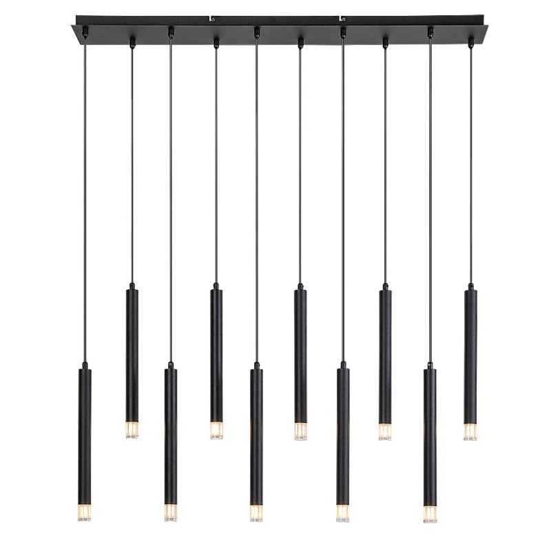 Lampa suspendată cu 10 becuri Rabalux Ramira este recomandată în primul rând celor care caută o lampă suspendată în stil minimalist, dar cu dimensiuni impresionante și intensitate luminoasă mare. Lampa este realizată din metal de culoare neagră elegantă și este completată de abajururi transparente din acrilic și o bază decorativă lungă, pătrată, de aceeași culoare cu capetele lămpii. Capetele lămpii cu diametru mic sunt realizate într-o formă tubulară, cilindrică și sunt aranjate într-un rând, una lângă alta. Capetele lămpii sunt suspendate la înălțimi variabile, ceea ce conferă acestui model un aspect unic. Lampa suspendată este ideală nu doar pentru living, ci și pentru bucătărie, sufragerie sau dormitor. Poate fi utilizată cu zece becuri, fiecare cu o putere de până la 5 W. Tipul de soclu este G9. Lampa este furnizată fără surse de lumină.