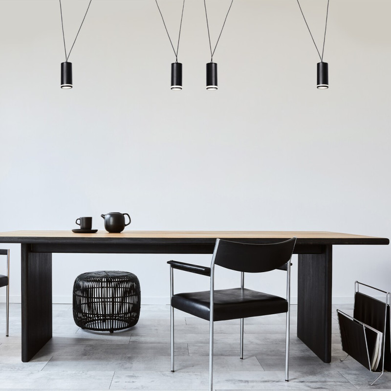 Pandantivul cvadruplu Senobia poate fi o alegere de stil pentru camera de zi, sufrageria sau dormitorul Dvs. modern. Acest model cu lățime și înălțime reglabile este fabricat din aluminiu de culoare neagră. Capetele cilindrice de lampă sunt completate de abajururi acrilice albe, iar lampa poate fi fixată pe tavan cu ajutorul unei baze decorative cilindrice mici. Senobia poate fi folosit cu patru surse de lumină, fiecare cu o putere de până la 35 W, tip soclu GU10. Puteți alege surse de lumină albă caldă sau naturală pentru acest pandantiv - dacă este folosit în dormitor, se recomandă să-l utilizați cu surse de lumină albă caldă, deoarece acest tip de lumină ajută la crearea unei atmosfere intime și primitoare. Dimensiunile lămpii sunt următoarele: lățime 300–3200 mm, un interval de suspendare reglabil între 800-1500 mm, diametrul fiecărui abajur 55 mm, lungime 120 mm, diametru de instalare pandantiv 55 mm. Pandantivul cvadruplu Senobia se livrează fără sursă de lumină.