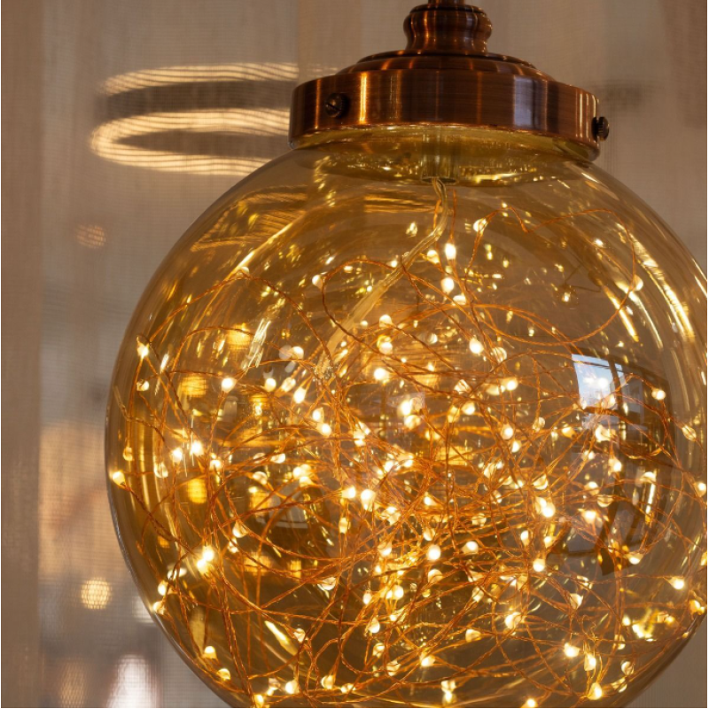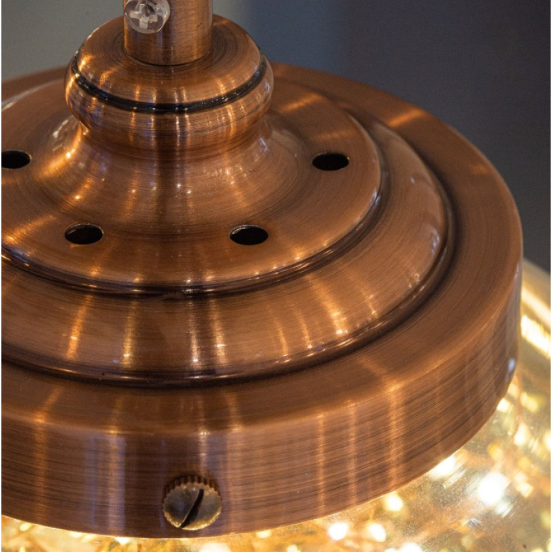 - corp din metal cupru, abajur sticla ambra(chihlimbar)