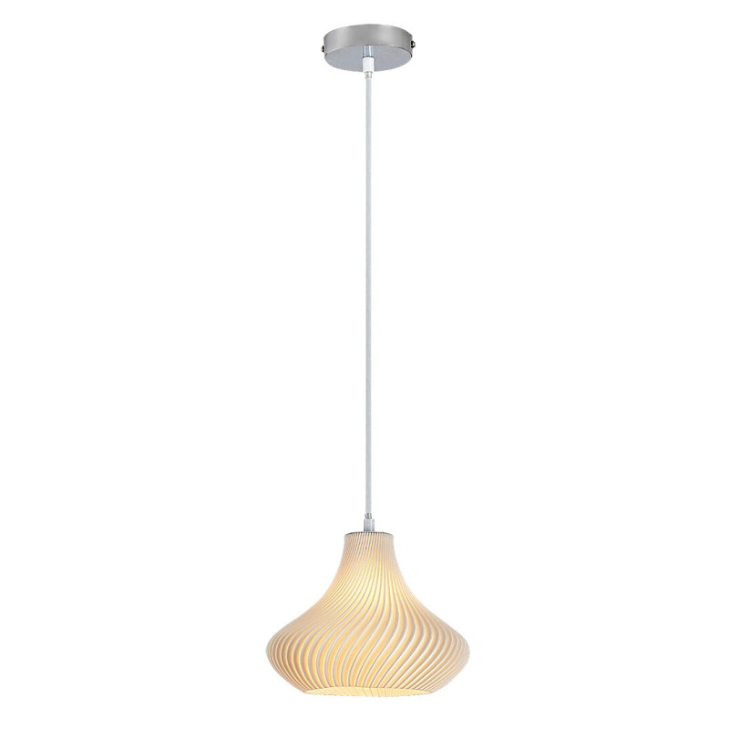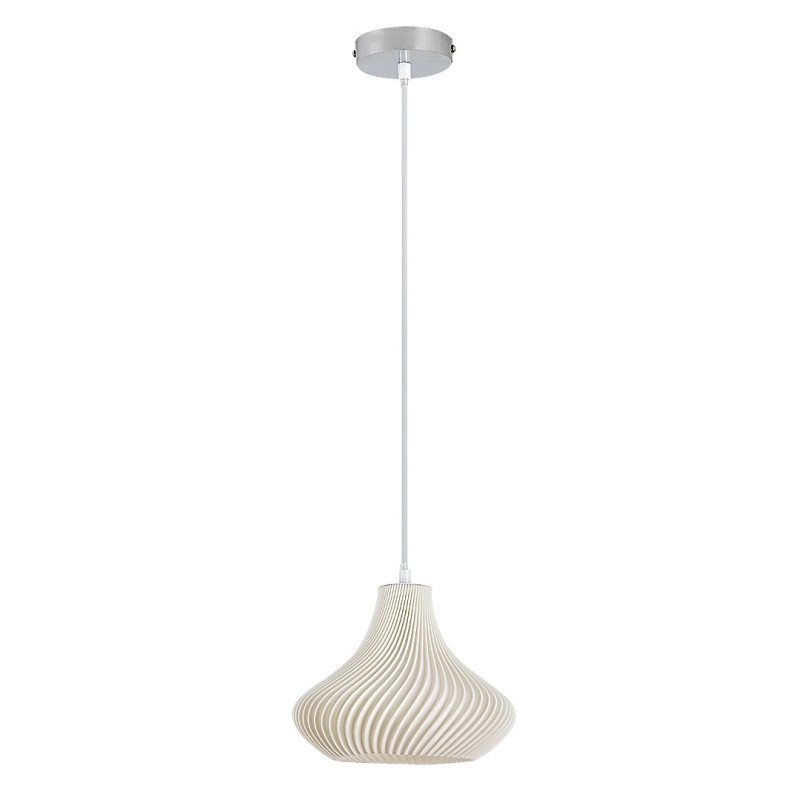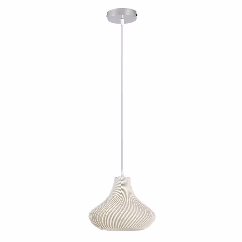 Pandantivul cu un aspect luxuriant și elegant Tiana, în stil modern, poate fi o alegere bună atât pentru camera de zi, cât și pentru sufragerie sau dormitor. Modelul cromat realizat din metal este completat de un abajur din plastic alb, iar lampa poate fi fixată pe tavan cu ajutorul unei baze decorative rotunde mici. Abajurul în formă de smochin, cu o suprafață răsucită, conferă acestei lămpi suspendate un aspect unic. Tiana poate fi utilizată cu o singură sursă de lumină cu o putere de până la 25 W, tip soclu E14. Puteți alege temperatura de culoare a sursei de lumină pe care doriți să o folosiți în funcție de gustul dumneavoastră: dacă lampa este folosită în dormitor, merită să folosiți un bec cu lumină albă caldă, deoarece acest tip de lumină ajută la crearea unei atmosfere confortabile și primitoare, este relaxant pentru ochi și ideal pentru deconectare. Dimensiunile pandantivului Tiana sunt următoarele: diametru 220 mm, suspendare 1200 mm, diametru de instalare 90 mm. Acest model se livrează fără sursă de lumină.