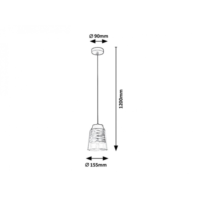 Dimensiunile pandantivului sunt după cum urmează: diametrul abajurului este de 155mm, distanța de la tavan 1.200mm, diametrul instalației de 90mm.