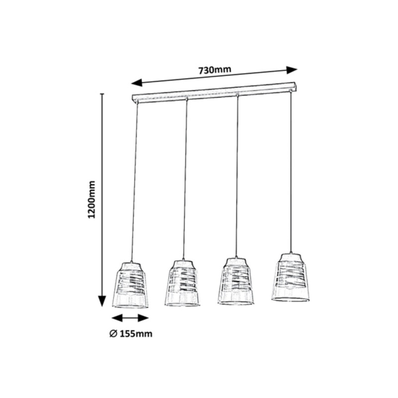 Dimensiunile pandantivului sunt după cum urmează: diametrul abajurului este de 155mm, distanța de la tavan 1.200mm, diametrul instalației de 90mm.