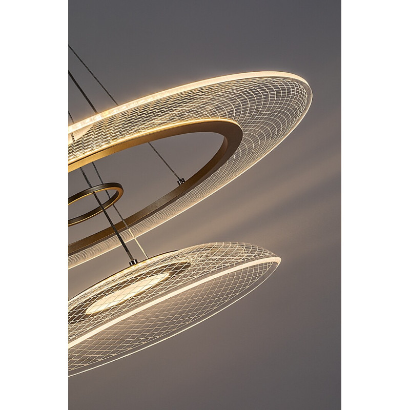 Lampa suspendată Rabalux Zofrael este recomandată celor care caută o lampă sofisticată, cu un aspect unic, pentru camere mai spațioase. Acest candelabru spectaculos este realizat cu un suport din metal de culoare aurie și un abajur din acril transparent. Este alcătuit din două capete de lampă suspendate unul sub celălalt, cel superior fiind plat și de formă disc, iar cel inferior mai mic și de formă umbrelă. Suprafața abajurului are un frumos model gravat, care devine vizibil atunci când lampa este aprinsă. Lampa suspendată poate fi montată pe tavan folosind o bază decorativă rotundă de culoare aurie și cabluri metalice de culoare argintie. Aceasta dispune de o sursă de lumină LED încorporată, care oferă o luminozitate mare, o funcționare eficientă energetic și o durată lungă de viață. Lampa emite o lumină albă caldă. Este ideală pentru living, dining sau dormitor.Intrebari frecvente