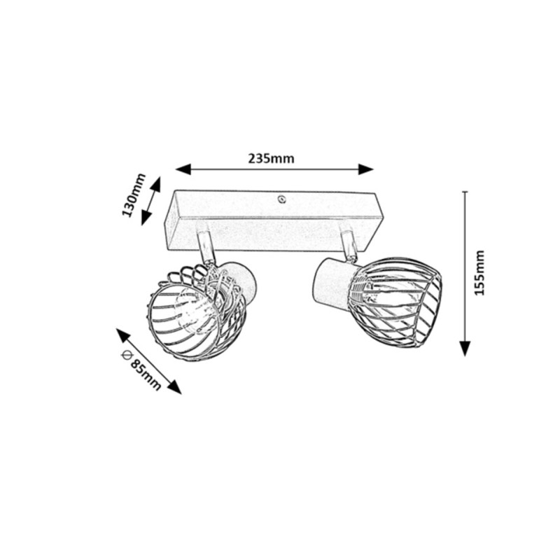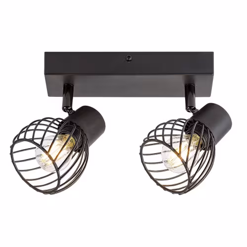 Spotul de tavan dublu Aberama, în stil industrial, este recomandat în primul rând pentru camera de zi sau dormitor. Modelul realizat integral din plastic de culoare neagră este completat de abajururi sferice cu o grilă deschisă în partea inferioară și poate fi fixat pe tavan cu ajutorul unei baze decorative dreptunghiulare. Datorită capetelor de lampă flexibile, amplasate unul lângă celălalt, puteți direcționa lumina acestora după preferințe. Aberama poate fi folosită cu două surse de lumină, fiecare cu o putere de până la 10 W, tip soclu E14. Dacă doriți să folosiți spotul de tavan în dormitor, se recomandă utilizarea surselor de lumină albă caldă pentru a facilita crearea unei atmosfere intime și familiale. Dimensiunile spotului de tavan dublu Aberama sunt următoarele: lățime 235 mm, înălțime 130 mm, diametru abajururi 85 mm, distanța lămpii față de tavan 155 mm. Acest model se livrează fără surse de lumină.Intrebari frecvente
