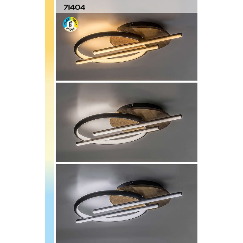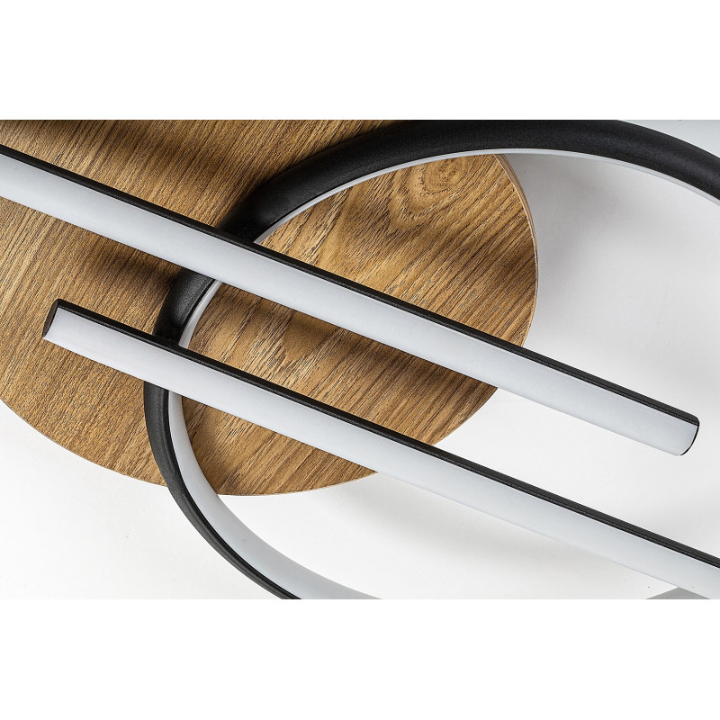 Lampa de tavan Rabalux Arash este alegerea ideală pentru cei care caută un model ce combină un design unic cu eficiența energetică. Lampa LED este realizată dintr-un corp metalic negru și un abajur din plastic alb, în timp ce baza decorativă este acoperită de un element de lampă din lemn în formă de disc. Lemnul adaugă căldură și eleganță aspectului acestei lămpi moderne. Corpul este format dintr-un element în formă de inel și două elemente lungi, asemănătoare unor tije. Lampa de tavan are o sursă de lumină LED încorporată care garantează o funcționare eficientă din punct de vedere energetic și o durată lungă de viață. Temperatura de culoare poate fi ajustată în trei trepte folosind un întrerupător de perete. Datorită intensității sale luminoase și designului său, acest model inteligent este perfect potrivit pentru iluminarea unei camere spațioase. Este ideal pentru sufragerii moderne, săli de mese și dormitoare.