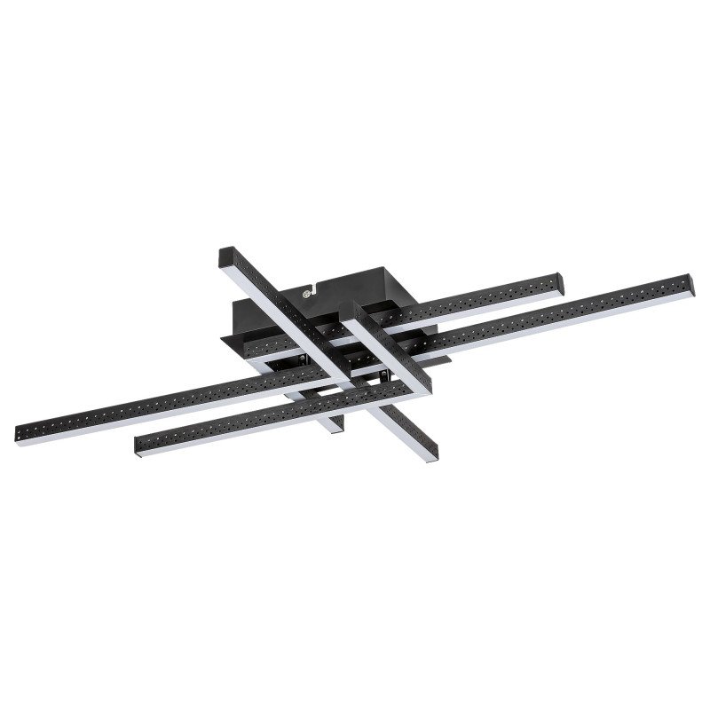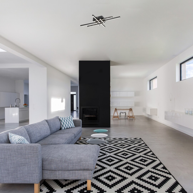 Plafoniera Casimir este recomandată în primul rând în camerele de zi sau dormitoarele moderne. Corpul de iluminat din metal negru mat este completat de abajururi din plastic alb, iar lampa poate fi fixată de tavan cu ajutorul unei baze decorative dreptunghiulare. Plafoniera Casimir este unică prin designul simplu, dar creativ - această lampă este formată din patru elemente în formă de L, care se intersectează. Plafoniera conține o sursă de lumină LED încorporată cu o putere de 35W, un flux luminos de 1.970lumeni, o durată de viață de 20.000ore și o temperatură de culoare de 4.000K. Lampa emite lumină albă naturală și are următoarele dimensiuni : lățime 710mm, înălțime 530mm, distanța față de tavan 80mm.