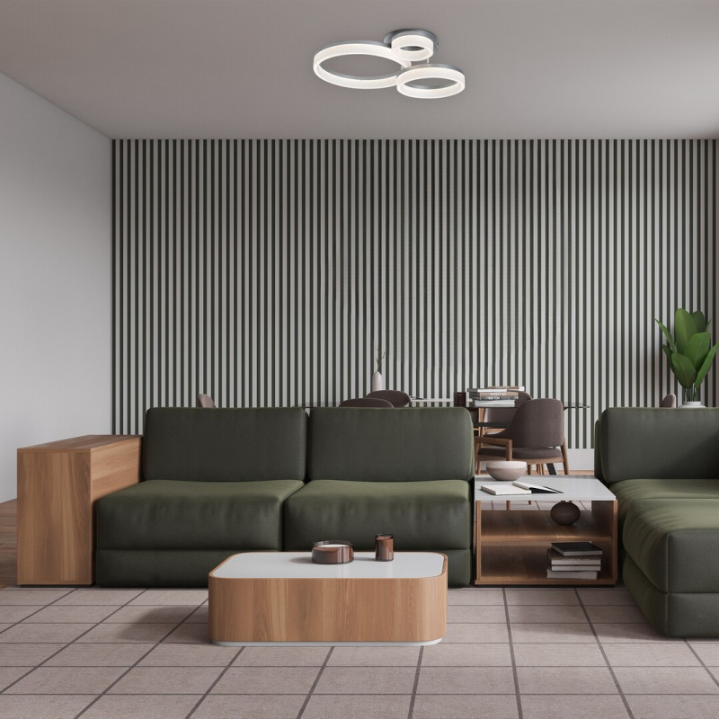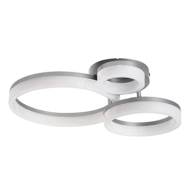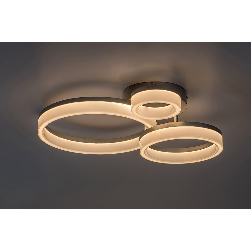 Lampa de tavan Rabalux Amilia este recomandată celor care apreciază atât designul creativ, cât și funcționalitatea. Această lampă LED are un stil modern, un suport metalic de culoare cromată și un abajur din plastic alb. Modelul spectaculos este compus din trei elemente în formă de inel, de dimensiuni diferite, și poate fi fixat pe tavan folosind o bază decorativă rotundă de culoare cromată. Lampa are o sursă de lumină LED încorporată cu trei setări de temperatură a culorii, controlate printr-un comutator DIP. Lampa de tavan are o intensitate luminoasă mare, ceea ce o face ideală pentru camere mai mari. Este alegerea perfectă pentru sufragerie, dining sau dormitor. Datorită tehnologiei LED integrate, acest model se caracterizează prin funcționare eficientă din punct de vedere energetic și o durată lungă de viață.