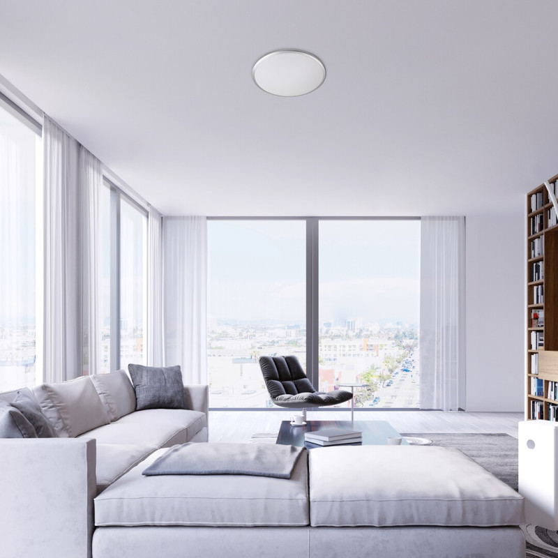 Plafoniera rotundă Engon poate fi o alegere corespunzătoare pentru orice cameră de zi sau dormitor modern. Designul simplu și subțire al modelului se integrează în mod discret în planul tavanului. Pentru cei care preferă funcția în locul designului special, această lampă este alegerea perfectă. Engon este fabricată în întregime din plastic în culoarea argintie cu un abajur alb și are o sursă de lumină LED încorporată aparținând clasei energetice G, care are o putere de 18 W, o luminozitate de 1220 lumeni cu abajur, 1800 lumeni fără abajur și o durată de viață de 25.000 ore. Plafoniera are o temperatură de culoare de 4000 K, lumina sa albă naturală oferind un efect modern și curat. Diametrul plafonierei Engon este de 270 mm, distanța față de tavan fiind în total 60 mm.