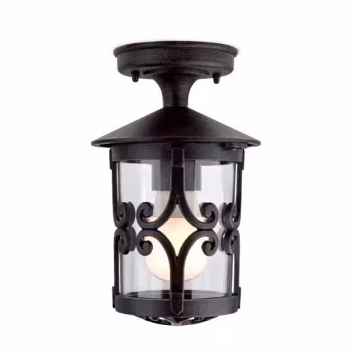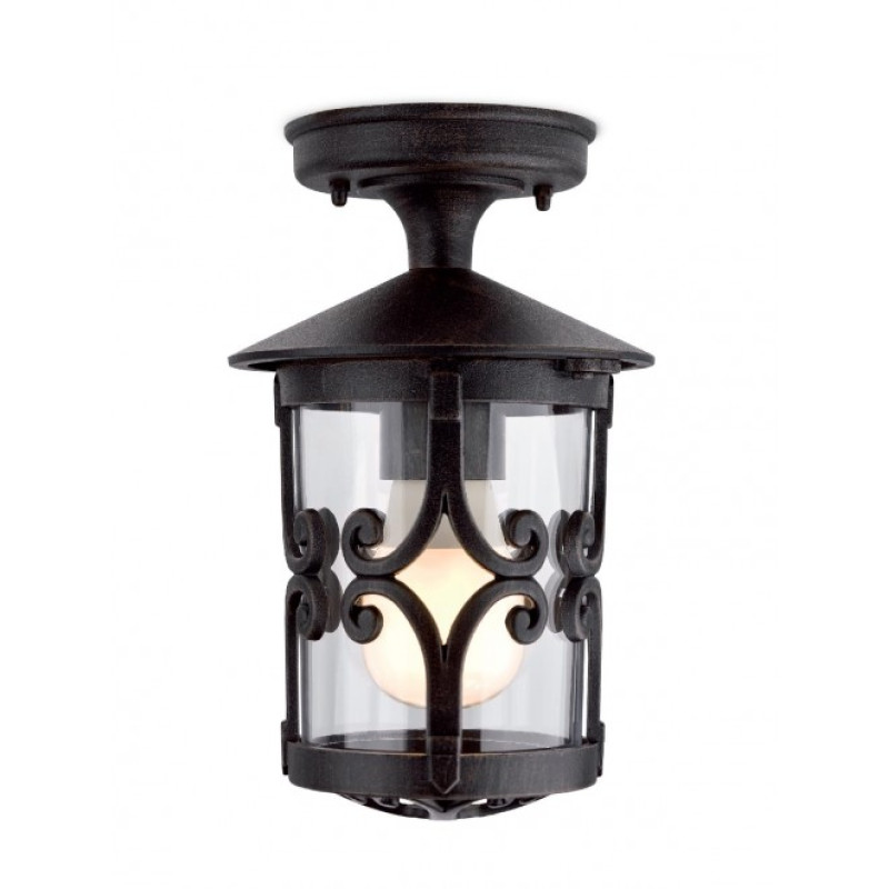 Plafonieră pentru exterior din aluminiu turnat, finisaj ruginiu, dispersor sticlă