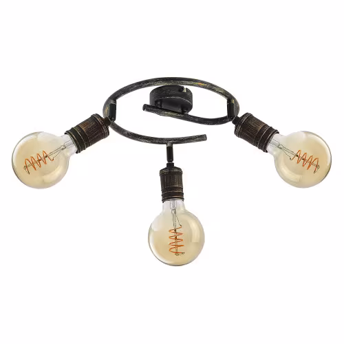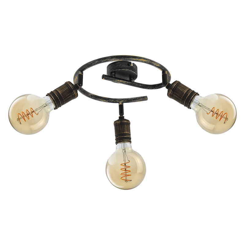 Spotul în stil industrial Fidel cu 3 becuri poate fi o alegere excelentă pentru diverse încăperi din apartamentul dvs.: îl puteți monta în camera de zi, sufragerie, bucătărie sau chiar bucătărie. Lampa antichizată, din metal auriu poate fi montată pe tavan cu ajutorul unei baze decorative mari, rotunde. Capetele cu 3 lămpi sunt poziționate pe bara de susținere spiralată, conectată la baza decorativă. Becurile sunt independente. Lampa Fidel poate fi folosită cu 3 becuri de maximum 25 W fiecare. Tipul de soclu este E27. În funcție de preferințe și locul instalării, puteți alege o sursă de iluminat albă caldă sau naturală. Datorită capetelor flexibile, lumina acestei aplici de perete poate fi direcționată după preferințe. Dimensiunile lămpii Fidel cu 3 becuri sunt: diametru 330 mm, lungime 155 mm, diametru de montare 80 mm. Acest model este furnizat fără surse de iluminat.
