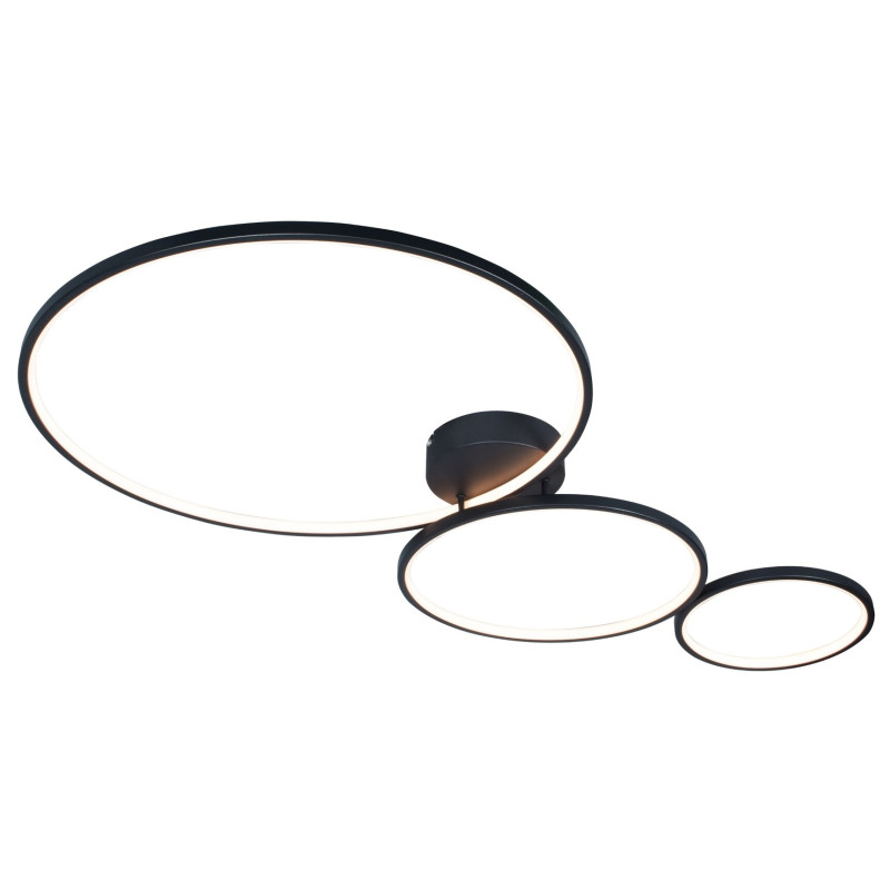 Plafoniera Rábalux Formand este recomandată pentru cei care caută un model cu stil modern, spectaculos, care se dovedește a fi în același timp și o alegere perfectă în ceea ce privește funcționalitatea. Aspectul unic al plafonierei LED este asigurat prin cele trei elemente de lampă rotunde interconectate, cu diametre diferite. Fiecare dintre aceste elemente sunt fabricate din metal și au culoare neagră elegantă, iar abajururile sunt fabricate din plastic de culoare albă. Sursa de lumină LED încorporată emite o lumină albă caldă, care emană o atmosferă intimă, confortabilă și primitoare. Dispunând de un design creativ, acest model este ideal pentru camera de zi, sufragerie sau dormitor. Datorită dimensiunilor sale mari plafoniera este ideală și pentru a fi instalată în incinte mai spațioase. Plafoniera este echipată cu tehnologie LED încorporată, ceea ce asigură o funcționare eficientă din punct de vedere energetic și o durată de viață deosebit de lungă.