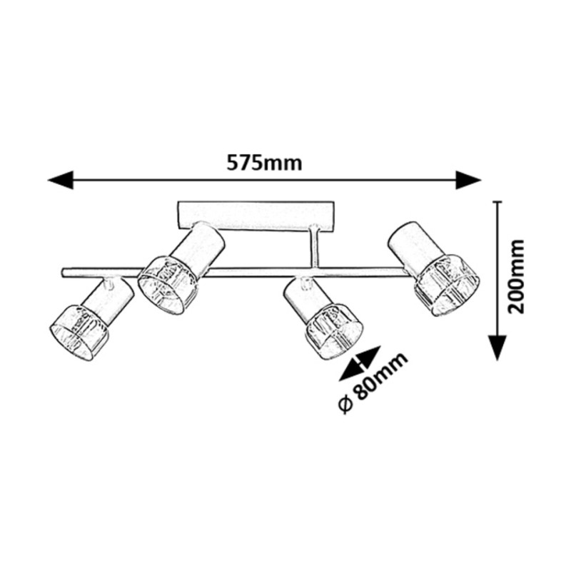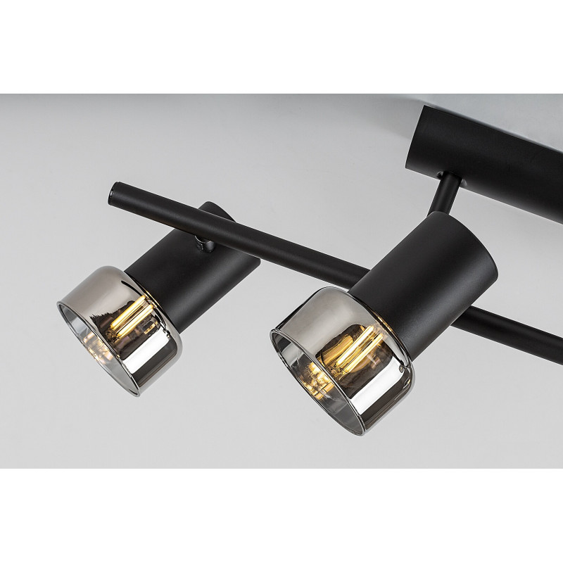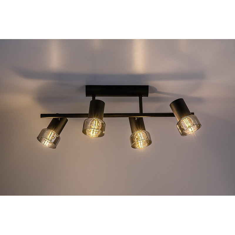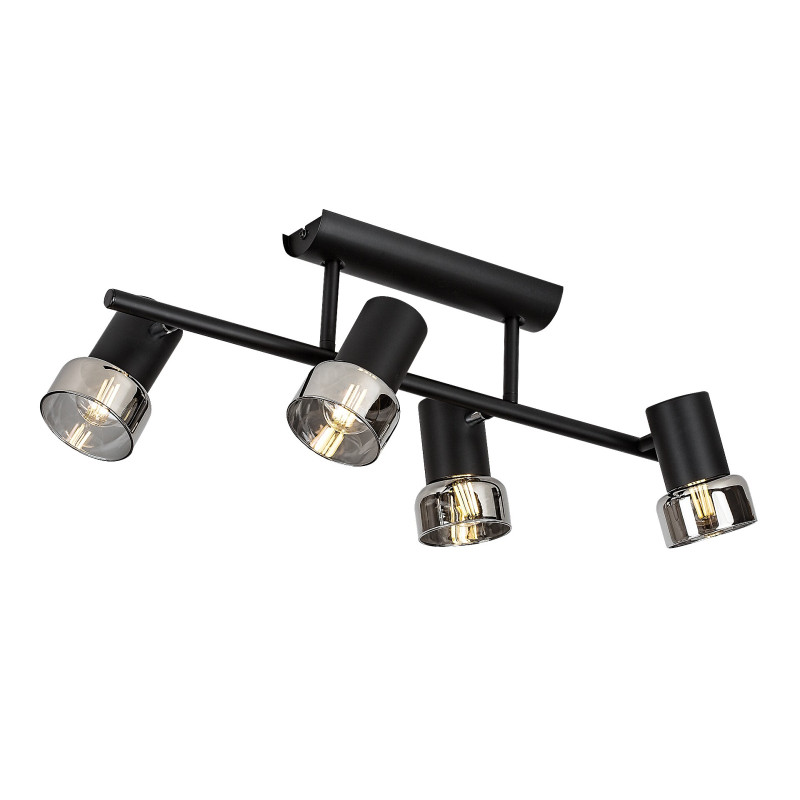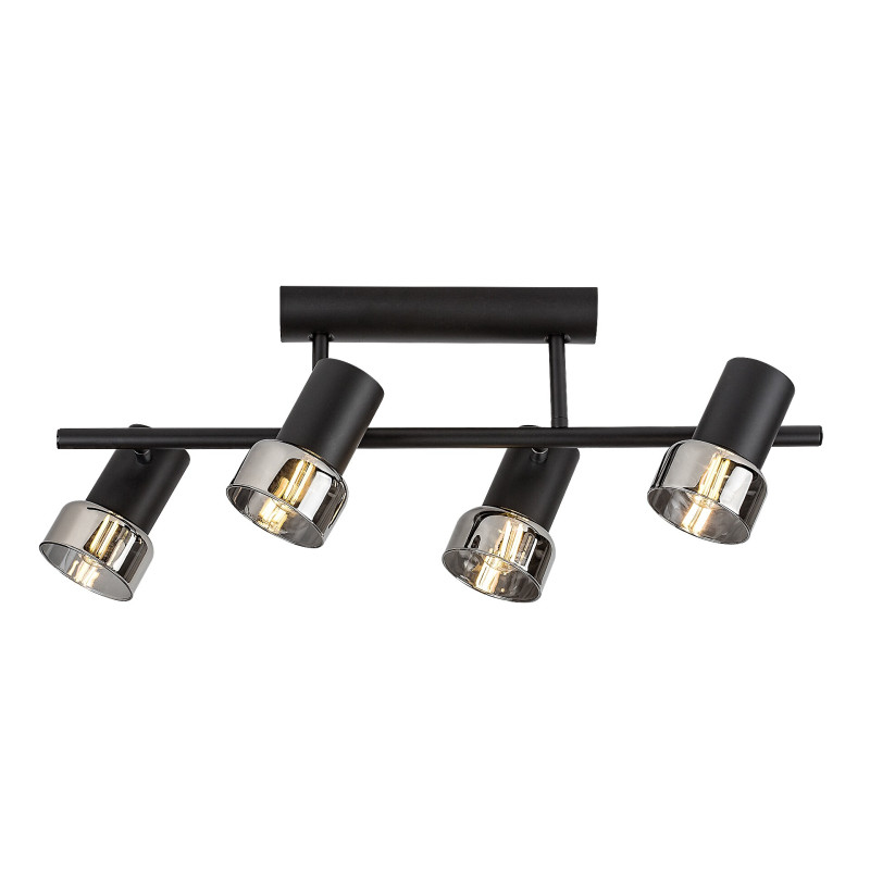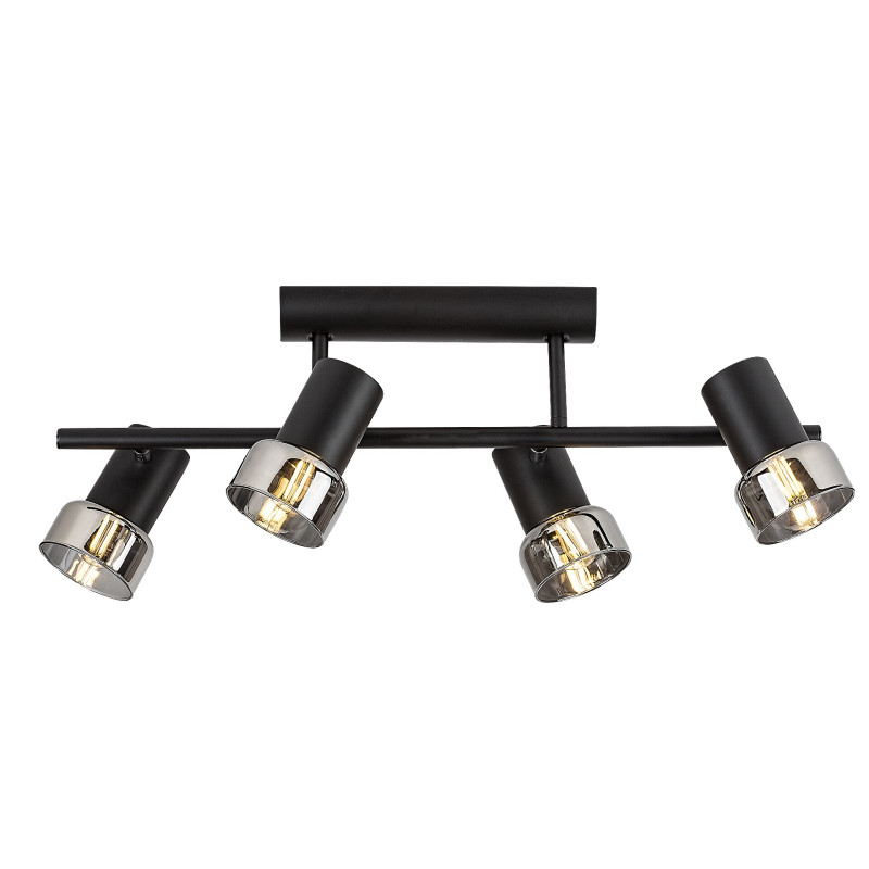 Rabalux Hatice spot de tavan cu 4 becuri este recomandat celor care preferă modele care combină funcționalitatea cu un stil minimalist. Lampa este alcătuită din forme cilindrice, corpul fiind realizat din metal de culoare neagră elegantă și completat de abajururi din sticlă fumurie. O bară de susținere cilindrică subțire este atașată la baza decorativă, cu câte două capete de lampă pe părțile opuse. Deoarece capetele lămpii pot fi rotite, lumina lor poate fi direcționată după preferință în cameră. Lampa poate fi utilizată cu patru becuri, fiecare cu o putere de până la 15 W. Tipul de soclu este E14. Spotul de tavan cu 4 becuri este alegerea ideală pentru living, dormitor sau birou. Acest model este livrat fără surse de lumină.
