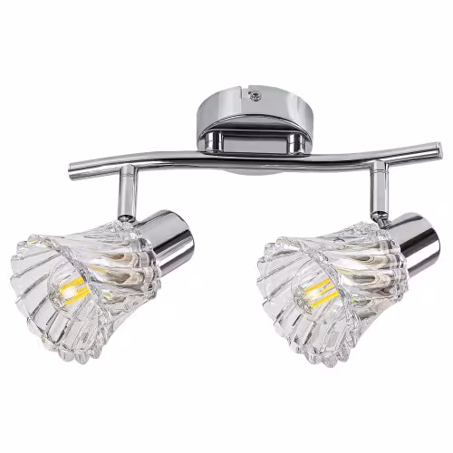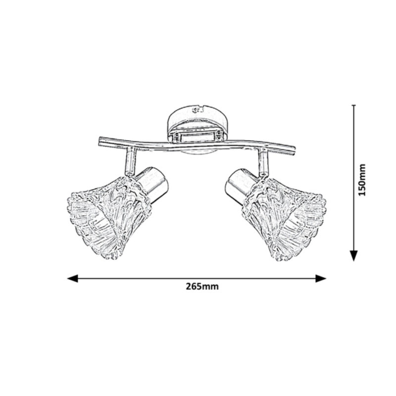 Spotul dublu Hestia în stil clasic va fi o piesă de mobilier elegantă în livingul sau dormitorul Dvs. Corpul de metal cromat este complimentat de abajururi transparente de sticlă. Lampa se poate fixa pe tavan cu ajutorul unei baze decorative rotunde. Ce e interesant la abajururile în formă de clopot este efectul răsucit al suprafeței lor unduioase. Hestia poate fi folosită cu două becuri, fiecare de până la 40W. Tipul soclului este E14. Dacă doriți să sporiți atmosfera intimă, plăcută, alegeți surse luminoase cu temperatura de culoare alb cald pentru această lampă. Dimensiunile spotului dublu Hestia sunt după cum urmează: lățime 265mm, înălțime 135mm, distanța de la tavan 150mm. Acest model se livrează fără surse luminoase.