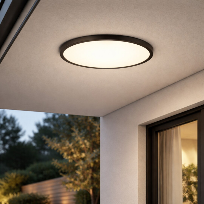 Lampa de plafon pentru exterior Rábalux Lautrec, cu un design modern și simplu, se integrează discret în tavan datorită formei sale plate, oferind în același timp o lumină abundentă și uniformă. Cadrul său rezistent din plastic de culoare antracit este completat de un abajur alb opal, de mari dimensiuni, asigurând o iluminare echilibrată. Sursa de lumină LED integrată permite ajustarea temperaturii de culoare prin intermediul unui întrerupător de perete, adaptând cu ușurință atmosfera – de la caldă, la neutră sau rece. Datorită protecției împotriva stropilor de apă, este ideală pentru iluminarea intrărilor, teraselor acoperite, balcoanelor sau a spațiilor din fața garajului. Această lampă de tavan practică și eficientă din punct de vedere energetic este o alegere durabilă și de încredere pentru locuințele moderne.