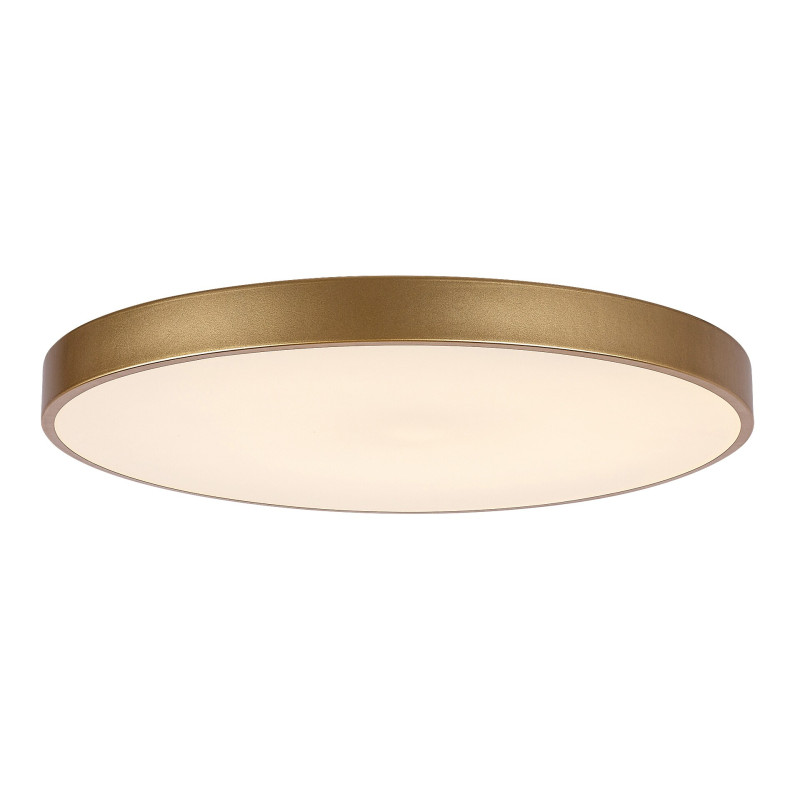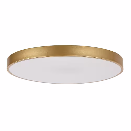 Plafoniera mare și rotundă Tesia este recomandată celor care caută un model simplu dar elegant și versatil pentru camera de zi sau dormitorul lor modern. Această lampă cu design subțire este practică și economisește spațiu, totodată vă va lumina în mod fiabil camera timp de mulți ani. Lampa metalică de culoare aurie este completată de un abajur din plastic alb. Tesia are o sursă de lumină LED încorporată cu o putere de 60 W, o luminozitate de 3760 de lumeni cu abajur, 4800 de lumeni fără abajur și cu o durată de viață extraordinară: 50 000 ore! Temperatura de culoare fără pâlpâire a lămpii poate fi reglată între 3000 și 6000 K, adică poate emite lumină albă caldă, naturală sau rece. Lampa este, de asemenea, dimabilă, adică luminozitatea sa este reglabilă, și are funcție de memorie, precum și de noapte. Tesia are un CRI (indice de redare a culorilor) de peste 80%, ceea ce este considerat excepțional de bun. Diametrul plafonierei este de 600 mm, distanța față de tavan fiind în total 50 mm.