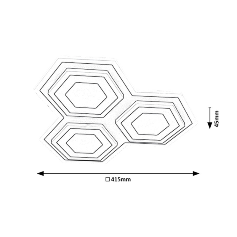 Plafoniera triplă Bitsi cu aspect viu și vesel este un design propriu Rábalux. Lampa formată din trei elemente hexagonale interconectate este recomandată celor care caută un design modern, incitant, precum și cu luminozitate ridicată pentru camera de zi sau dormitor. Plafoniera Bitsi care strălucește în culorile negru și galben nisip este fabricată din metal și completată de un abajur din plastic alb. Plafoniera are o sursă de lumină LED încorporată cu o putere de 72 W, luminozitatea lămpii este de 3200 lumeni, luminozitatea sursei de lumină este de 9100 lumeni, temperatura de culoare fiind reglabilă: Se poate seta o combinație de 3000+6000 K. De asemenea, luminozitatea plafonierei Bitsi este reglabilă - la fel ca temperatura culorii - cu ajutorul unei telecomenzi. Dimensiunea plafonierei ultra-subțiri este de 430x420 mm, distanța față de tavan fiind în total doar 45 mm.