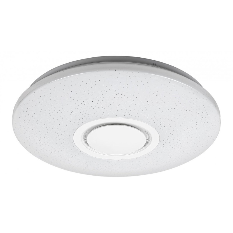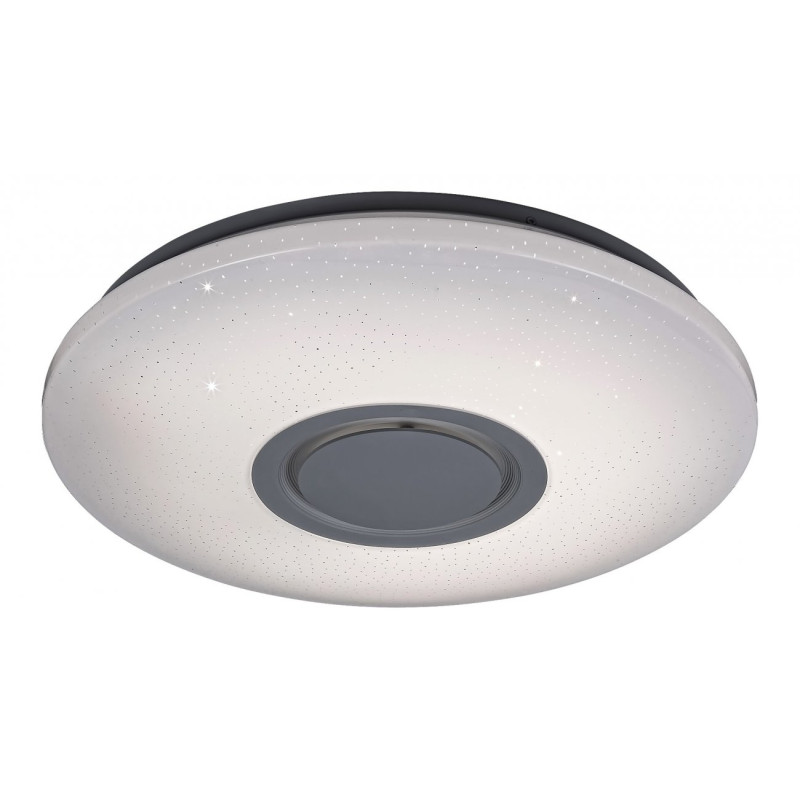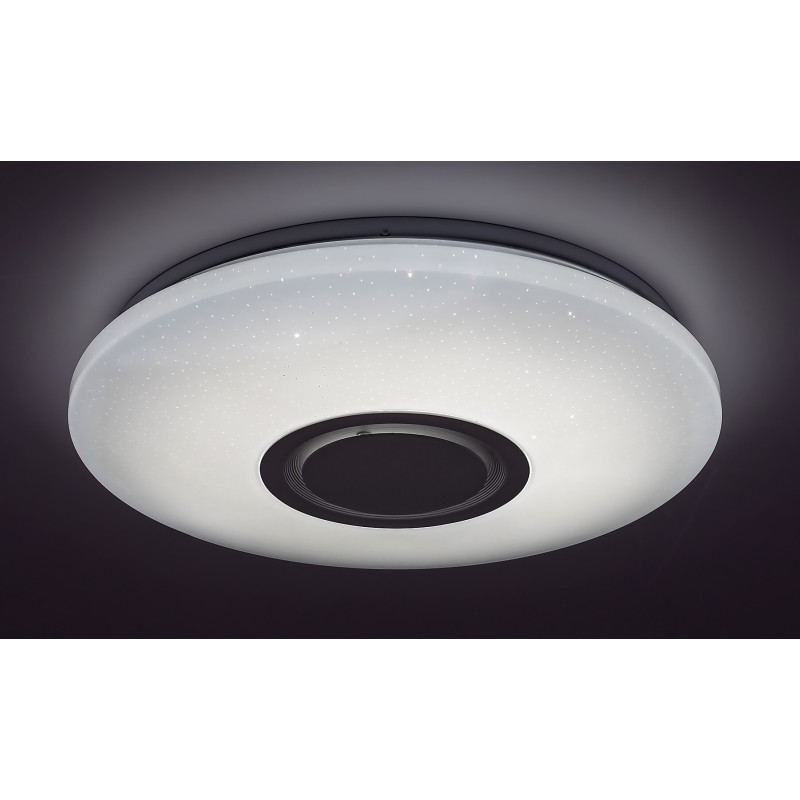 atorită numeroaselor funcții suplimentare ale plafonierei Rodion, realizată din metal și acril, toată familia o va aprecia. Recomandăm această lampă rotundă, cu efecte strălucitoare îndeosebi în sufragerie sau în dormitor. Puterea sursei de lumină LED integrată este de 24 W se încadrează la având o luminozitate de 1800 de lumeni și durata de viață de 30 000 de ore. Temperatura de culoare a lămpii inteligente poate fi reglată după preferințe între 2700 și 6500 K, respectiv pentru lumină caldă, naturală sau chiar rece. Totodată, poate fi reglat și iluminatul ambiental RGB. Dar funcțiile suplimentare nu se termină aici: Rodion poate fi reglat ca intensitate din telecomandă, inclusiv pentru funcția de iluminat nocturn. Plafoniera echipată cu funcție de temporizare și difuzoare Bluetooth poate fi comandată printr-o conexiune Wi-Fi. Distanța lămpii cu diametrul de 400 mm până la tavan este de 90 mm.